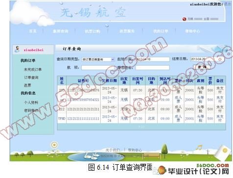 本系统主要处理的数据有:客户的基本信息,如用户编号(id)、用户名(username)、用户密码(password)、电子邮件(email_add)、联系方式(telephone)等;航班信息,如航班号(hanBan)、出发地(chuFa)、目的地(muDi)、日期(flag)等;订单信息,如订单号(id)、用户名(username)、乘客(xingming)、证件(shengfen)、证件号(shengfenzhenghao)等。客户登录后可以看到以上信息,并可以对他们进行查询。还有后台管理员的数据信息,如管理员编号(id)、管理员(adminName)、密码(password)、权限(flag)等。后台管理人员可以对以上信息进行查询及增删改。 [资料来源:www.THINK58.com]