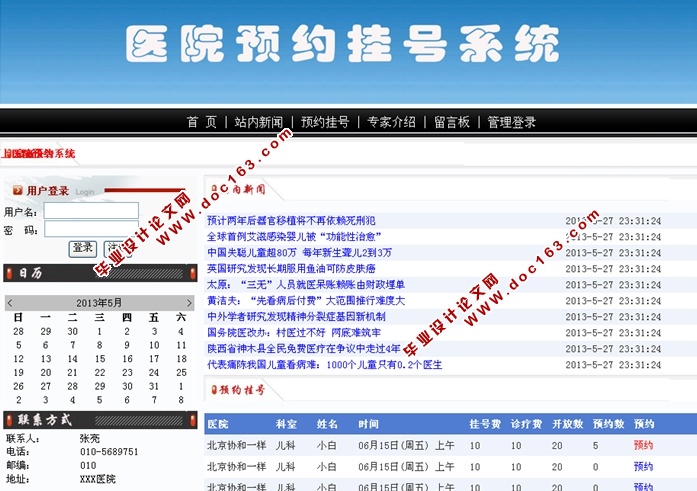 (3)管理员可以管理新闻管理,专家信息的管理,坐诊时间的管理。