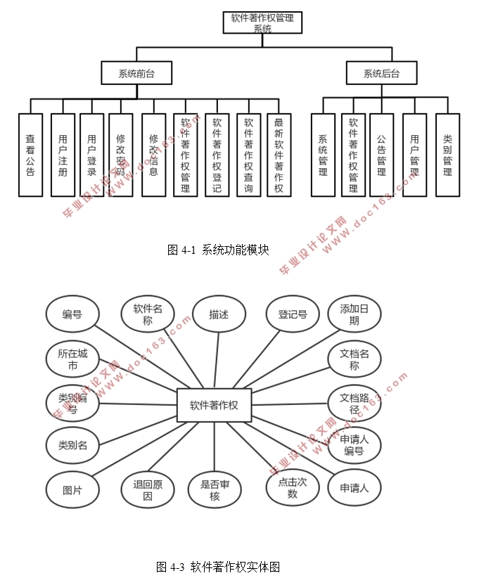 本设计的目标,即通过运用所学的理论知识,开发出一个可以管理软件著作权的系统,系统的功能模块主要见以下: