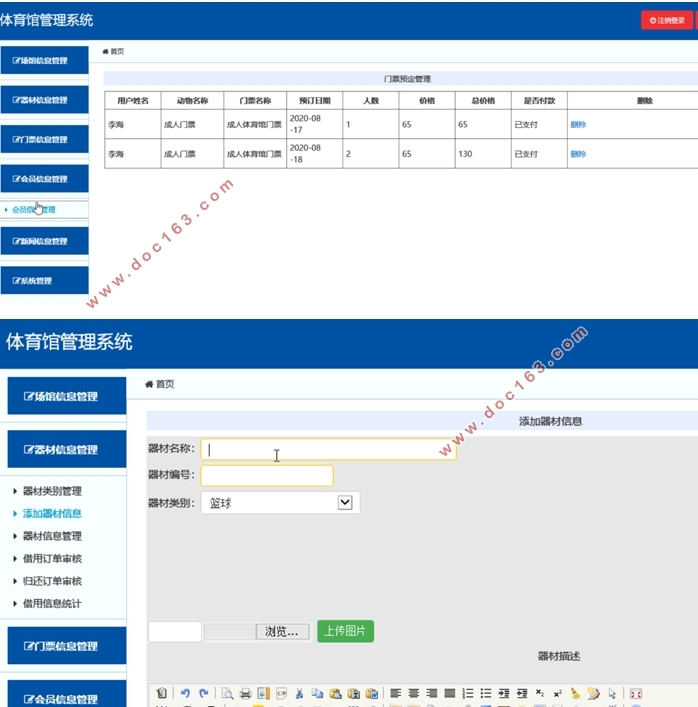 4.体育器材信息添加:系统管理员对于体育器材信息进行添加,审核后发布给会员;