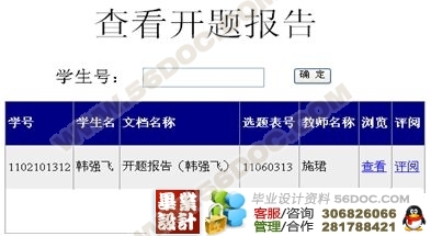 通过这个模块老师可以浏览学生的上传的开题报告、英文翻译、毕业论文,然后对这些报告进行评阅。