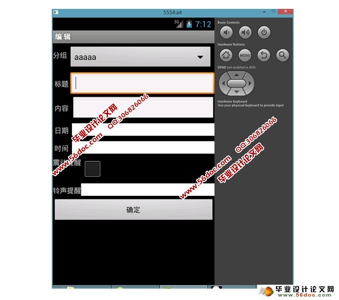 本软件是一个Android 客户端应用程序,启动Android上的应用程序后可以查看日程的信息,包括标题、内容、铃声提醒等。