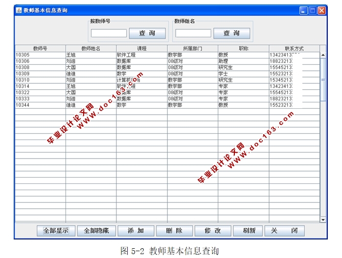 教学楼的基本信息,主要包括教师号,教师姓名,使用时间,所属部门等;
