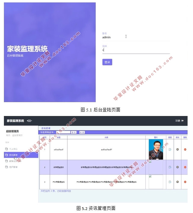 本系统实现一个基于移动平台的家装监理系统,分为服务器端和客户端两种用户。服务器端可以在网站后台进行管理;用户通过手机端自由登录客户端平台进行管理。具体功能描述如下: