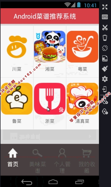 android菜谱程序是基于android手机的一款应用软件,为用户提供菜谱以及管理自己收藏的菜谱。同时,系统依据用户的浏览历史信息为用户推荐不同口味的菜肴.