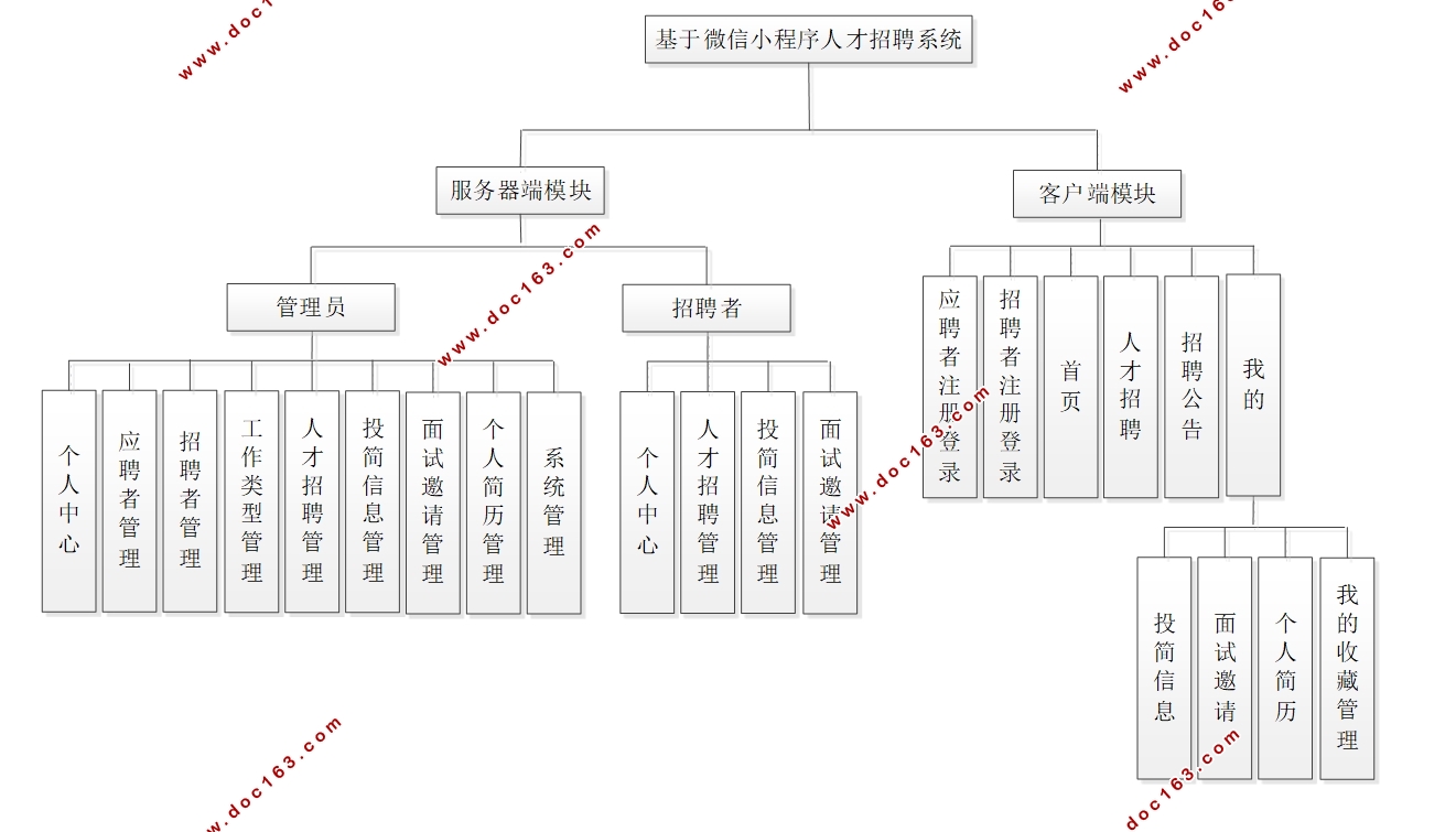 本系统实现一个基于微信小程序人才招聘系统,分为服务器端和客户端两种用户。服务器端可以在网站后台进行管理;用户通过手机端自由登录客户端平台进行管理。具体功能描述如下: