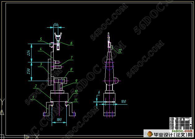 该机器人具有四个自由度 ,即腰关节、肩关节、肘关节和腕关节,都为转动关节;还有一个用于夹持物料的机械手。 [来源:http://www.think58.com]