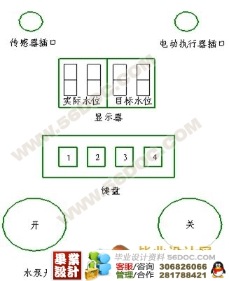 本实验装置为液位自控实验装置,它可以进行多种控制系统内容的实验。本次课程设计大致可分为两块:其一、实验装置的工艺部分的设计及选型部分如泵、阀、液微计等的选型,我们都采用标准件,因这是实验装置所以要求所选的装置都要尽量符合本实验装置的需要并配备齐全,为不久的将来能做出次实验装置做准备。其二、实验装置的控制电路设计及软件程序的设计:因时间有限,我们只做要求多种控制系统中的一种即只用一个泵抽水单片机只控制一个电动执行器工作,我们用单片机来实现这部分的液位自动控制。